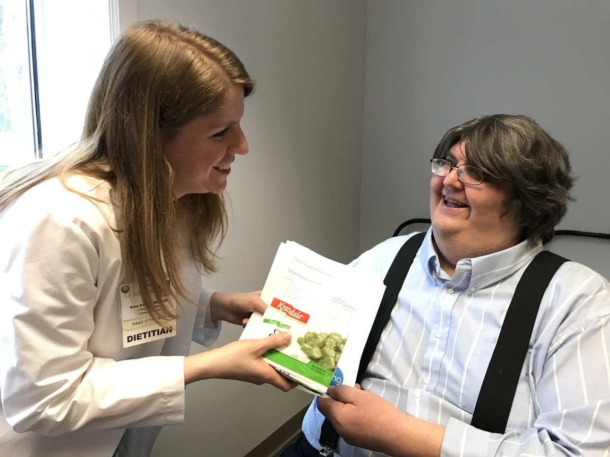 Registered dietitian Anna Ziegler advises Tom Shicowich, who has type 2 diabetes. Since enrolling in the Food Food Fresh program, Shicowich has lost about 45 pounds. Its A1C level has decreased considerably.